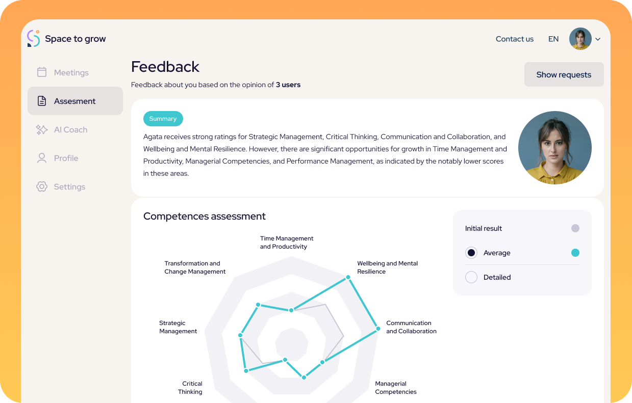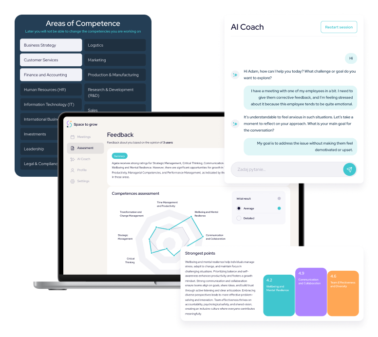 We create space for growth – offering coaching tools based on modern leadership methodologies and AI-driven insights.