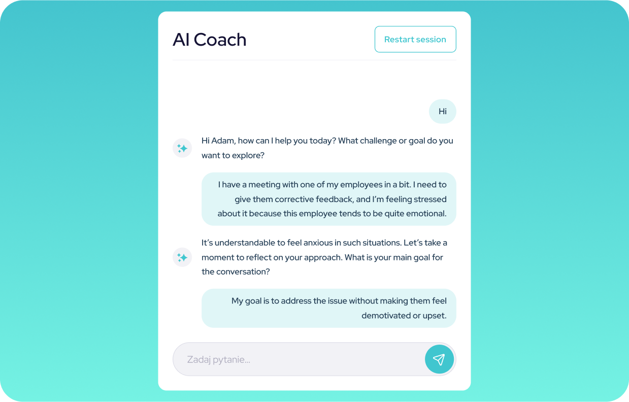 We leverage AI for personalized leadership development – our AI Coach is available 24/7 to support managers with their everyday challenges.
